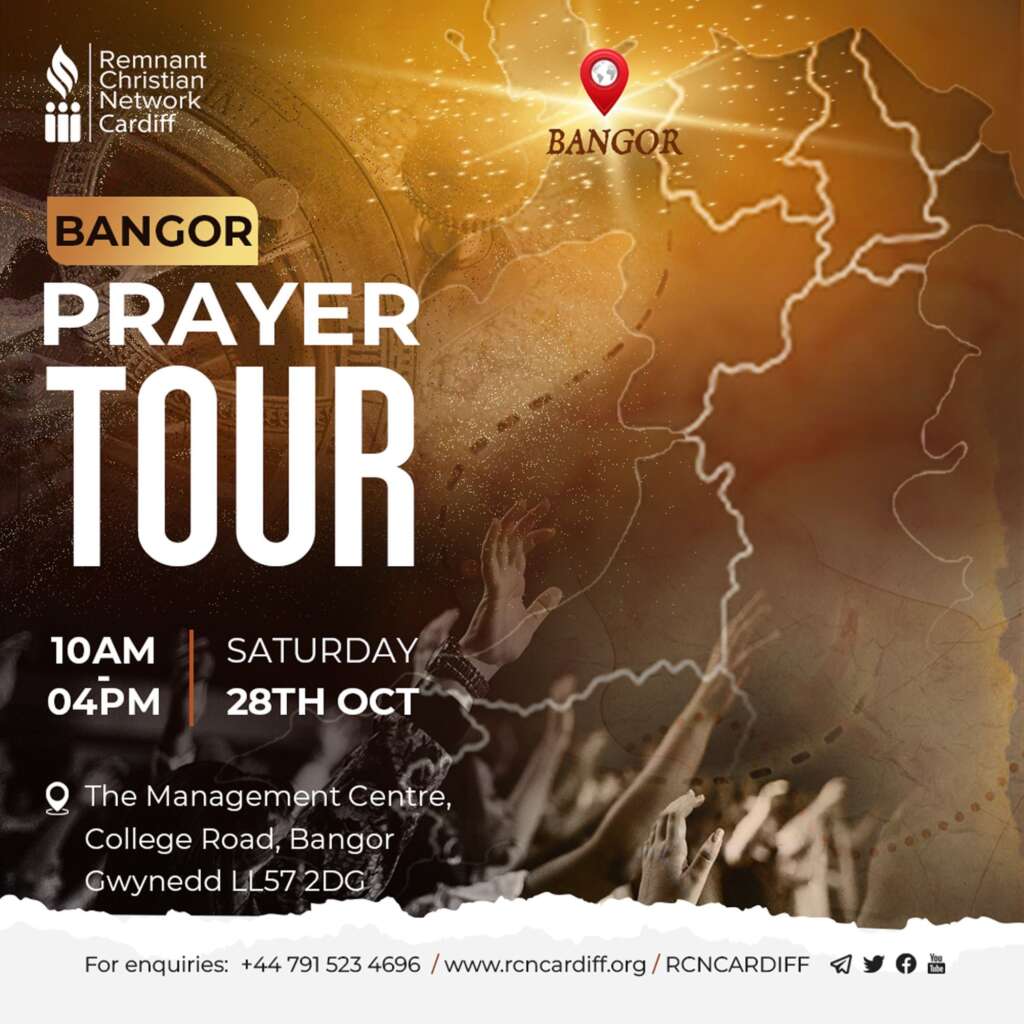 In 2023, we received a divine mandate to embark on a prayer journey through the most influential cities in Wales, including Bangor, Swansea, and Newport. Our mission is to light up fires of prayers in these cities in a bid to see God’s name exalted in Wales.